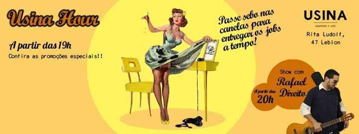Usina Quarenta e Sete 22 mar 2016 20:00 Rio de Janeiro – RJ Release Usina Hour com RAFAEL DIREITO no nosso 1º andar a partir das 19h Couvert R$15